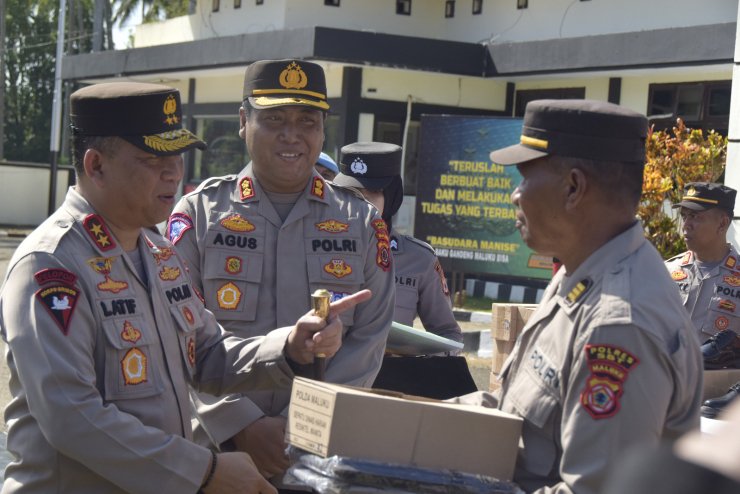 Kapolda Maluku menyerahkan peralatan teknis kepolisian yang diharapkan dapat mendukung tugas-tugas operasi kamtibmas oleh anggota di lapangan