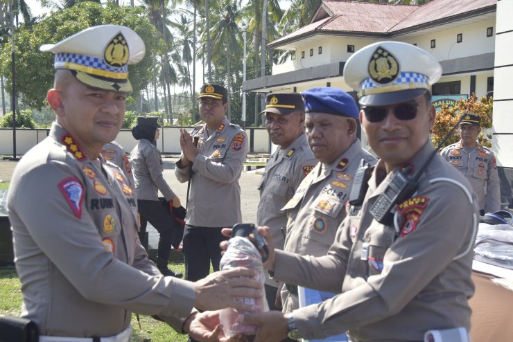 Bantuan peralatan teknis kepolisian diberikan kepada satuan Polair, Lalu Lintas (Lantas) dan Logistik Polres SBT. Penyerahan bantuan berlangsung di Markas Polres SBT, Kota Bula, Sabtu (7/10/2023).