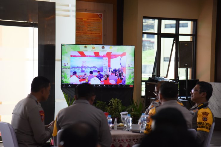 Pada Vicon tersebut, Kapolri bersama Menteri PMK pun menyapa para Kapolda jajaran bersama para Gubernur dan Pangdam serta seluruh pimpinan instansi terkait di masing-masing daerah.