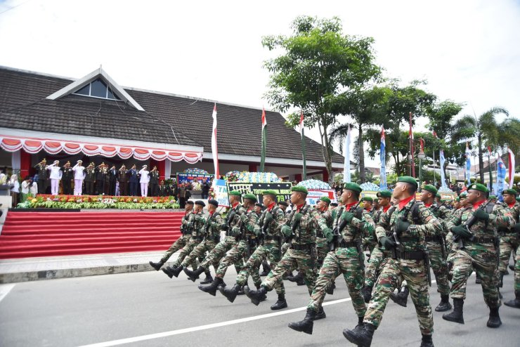 Irjen Eddy berikan apresiasi tinggi atas pelaksanaan defile pasukan upacara dan alutsista dalam rangkaian peringatan HUT ke-79 TNI.