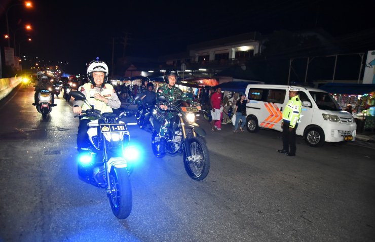 Rombongan patroli melintasi sejumlah lokasi strategis di Kota Ambon, yang dimulai dari Lapangan Polda Maluku, Letkol Pol (Purn) Chr. Tahapary, hingga ke Baileo Emas Putih Kodam XV/Pattimura, Tapal Kuda, Kelurahan Benteng.