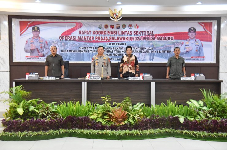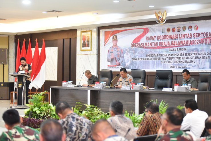 Rakor Lintas Sektoral untuk Operasi Pengamanan Pemilihan Kepala Daerah - Wakil Kepala Daerah (Pilkada) di wilayah provinsi Maluku Tahun 2024 ini digelar di Rupattama Mapolda Maluku, Kota Ambon, Kamis (25/7/2024).