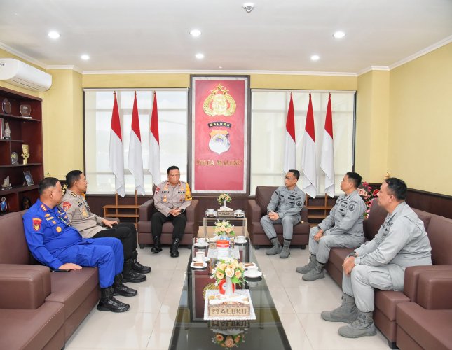 Kunjungan Pejabat baru Kabakamla Zona Maritim Timur disambut hangat oleh Kapokda yang didampingi sejumlah pejabat utama Polda Maluku.