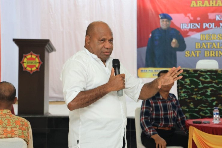 Papuanewsonline.com, Merauke – Kepala Kepolisian Daerah Papua Irjen Pol. Mathius D. Fakhiri, S.I.K memberikan arahan kepada personel Batalyon D Pelopor Satbrimob Polda Papua terkait dengan Pengamanan Pemilu 2024 yang dilaksanakan di Aula Abama Mako Batalyon D Pelopor Satbrimob Polda Papua, Kabupaten Merauke, Rabu (18/02/2024).