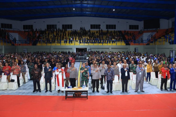Kegiatan yang dilaksanaka di GOR Futsal Jalan Poros SP 5 Timika, Kab. Mimika, Provinsi Papua Tengah, Minggu (09/06/2024) dihadiri oleh Wakapolda Papua, Brigjen Pol. Patrige Rudolf Renwarin, S.H., M.Si., Kaskogabwilhan III Marsda TNI Deni Hasoloan Simanjuntak, S.E., Pembawa Khotbah Pastor John Bunay, Pr., Pembawa Khotbah Pdt. Elton Bernard, S.Th, para PJU Polda Papua, Para Tokoh Agama, Tokoh Pemuda, Tokoh Perempuan dan Tokoh Masyarakat beserta Hamba-Hamba Tuhan di Kabupaten Mimika.