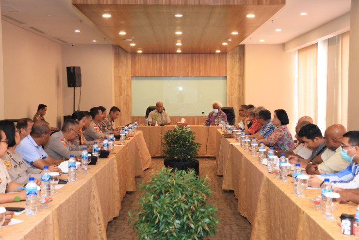Papuanewsonline.com, Jayapura – Kapolda Papua, Irjen Pol. Mathius D. Fakhiri, S.I.K didamping Ketua FKUB Prov. Papua, Pdt. Lipiyus Biniluk, M.Th. memimpin pelaksanaan rapat kesiapan pelaksanaan Ibadah Syukur Hari Pekabaran Injil ke-169 dan Kebaktian Kebangunan Rohani (KKR) Polresta Jayapura Kota yang akan dilaksanakan di GOR Cenderawasih Kota Jayapura pada tanggal 5 Februari dan 6 Februari.