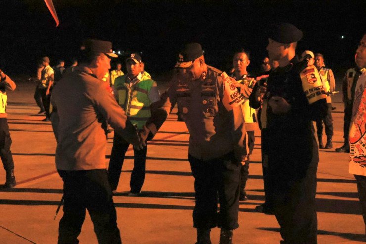 Rombongan tiba pukul 02.00 WIT, menggunakan pesawat Polri Boeing 737-800NG / P - 7301 yang dipiloti oleh Kompol Troy dan Kompol Gigih.