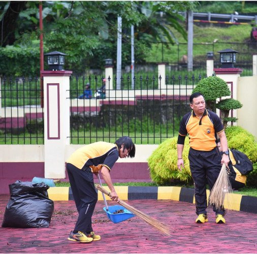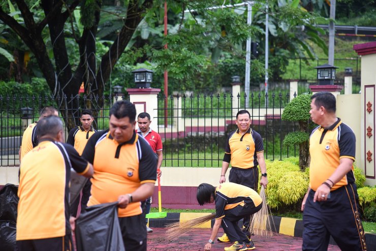 "Kebersihan lingkungan juga dilakukan untuk menjaga kerapihan baik itu asrama maupun tempat-tempat ibadah di lingkungan Mapolda serta Mapolres jajaran," katanya.