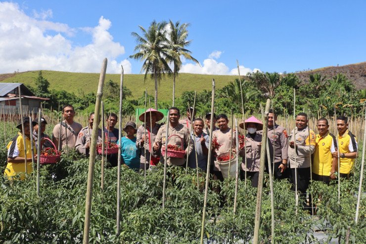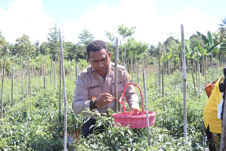 Kapolres Jayapura Panen Cabe Keriting Dari Lahan Binaan Bhabinkamtibmas Di Sentani