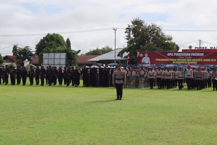 Kapolres Merauke Pimpin Apel Pasukan Pengamanan Rapat Pleno KPU Papua Selatan