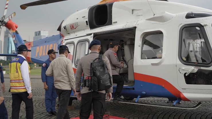 Menaiki helikopter, Sigit dan Hadi melihat langsung melalui pantauan udara kesiapan arus mudik Lebaran di Pelabuhan Merak Banten, Senin, 1 April 2024.