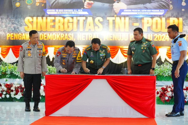 Kedua orang nomor 1 di lingkungan Polri dan TNI itu juga melakukan penandatangan Deklarasi Pemilu Damai di provinsi Maluku yang dipimpin oleh Rektor Universitas Pattimura Ambon, Prof. Dr. Fredy Leiwakabessy.