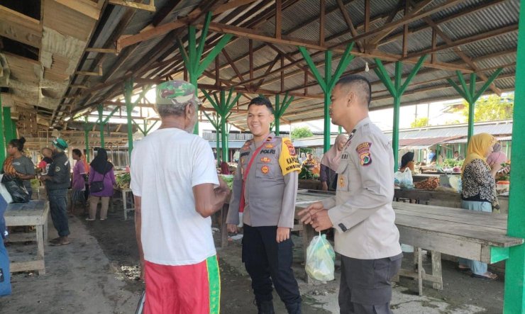 Dalam kunjungannya kapolsek sampaikan pesan keamanan bagi para pedagang dan warga.