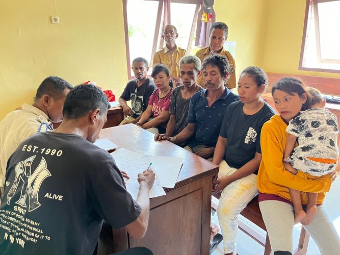 Papuanewsonline.com, Tanimbar - Polres Kepulauan Tanimbar, Sebagai Pelayan Masyarakat guna menciptakan kehidupan harmonis, damai dan saling pengertian dalam rumah tangga, Kapolsek Wuarlabobar Ipda EVER FASSE menyelesaikan Persoalan Warga melalui Mediasi, Rabu (22/11).