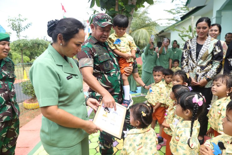 Dalam kesempatan tersebut, Kasad yang didampingi Ketua Umum Persit Kartika Chandra Kirana Ny. Uli Simanjuntak, juga meninjau TK Kartika Wirapratama dan menyerahkan Perlengkapan Perorangan Lapangan (Kaporlap) kepada seluruh personel Korem 033/WP, yang diberikan secara simbolis kepada perwakilan prajurit Korem 033/WP. (PNO-12)