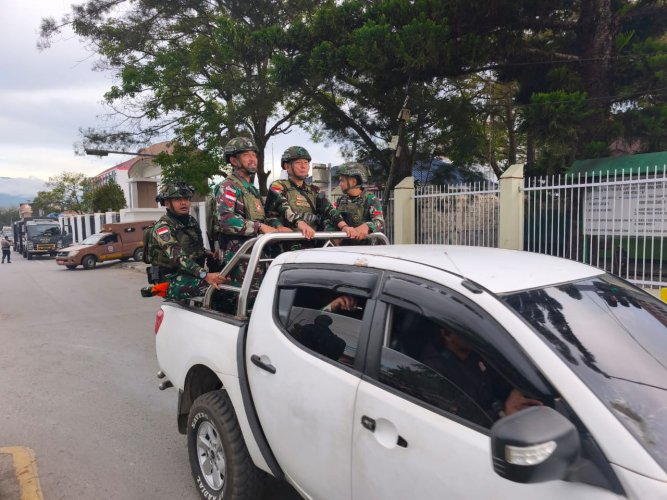 Selanjutnya anggota OMPC II -2024 Wilayah Papua Pegunungan melaksanakan Show Of Force keliling Kota Wamena, Kabupaten Jayawijaya, Provinsi Papua Pegunungan. PNO-12
