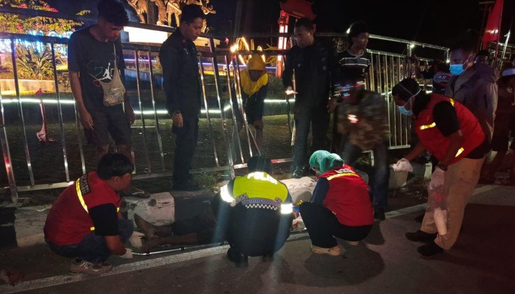 mendapatkan penanganan dari tim ambulans 119 yang tiba di lokasi kejadian,