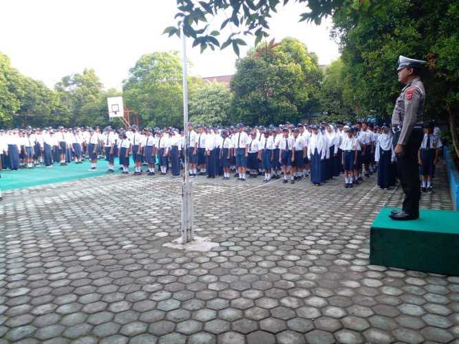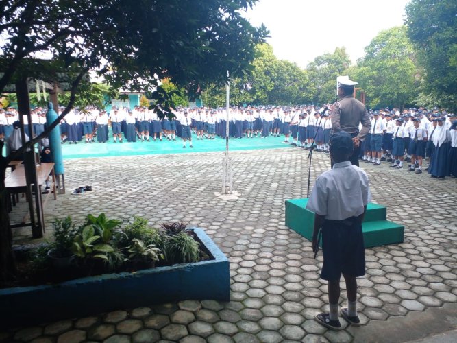 Kunjungi SMP N 4, Satlantas Polres Nabire Berikan Edukasi Dalam Mematuhi Peraturan Lalu Lintas