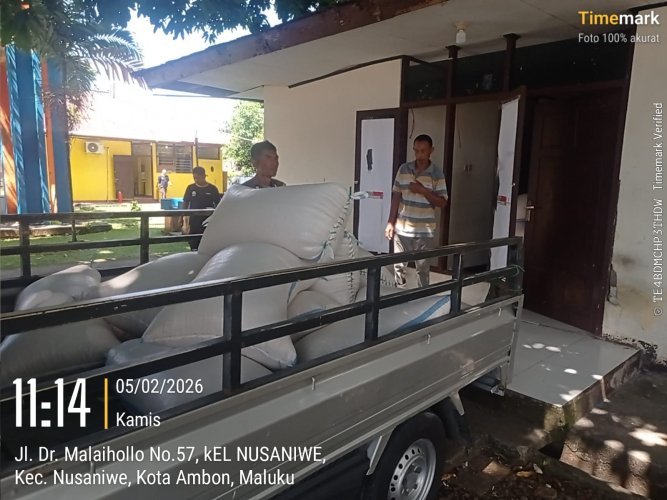 Pada Kamis (5/2/2026) pukul 09.11 WIT, Kanit Binmas Polsek Teluk Ambon IPDA Burhan Nawir, didampingi Bhabinkamtibmas Negeri Hative Besar AIPTU I Komang Adi Sukerta, bersama Ketua Kelompok Tani Sumber Rezeki Daeng Baharudin, melaksanakan pengepakan jagung pipil hasil panen kuartal IV untuk persiapan pemasaran dan penjualan ke Bulog. Kegiatan tersebut dikoordinir langsung oleh Kapolsek Teluk Ambon IPTU Restu H. Purba, SH, MH.