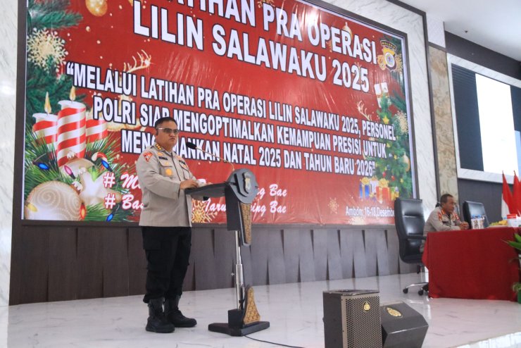 Papuanewsonline.com, Ambon - Kepolisian Daerah (Polda) Maluku mulai mematangkan kesiapan personel dalam rangka pengamanan perayaan Natal 2025 dan Tahun Baru 2026 melalui pelaksanaan Latihan Pra Operasi (Lat Pra Ops) Lilin Salawaku 2025. Kegiatan tersebut dipimpin langsung oleh Kepala Biro Operasi (Karo Ops) Polda Maluku, Kombes Pol. Ronald Reflie Rumondor, S.I.K., M.Si., dan berlangsung di Gedung Plaza Presisi Polda Maluku, Tantui, Ambon, Kamis (18/12/2025).
