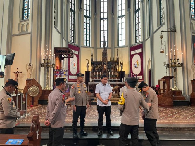 Papuanewsonline.com, Jakarta - Polri terus memastikan kesiapan pengamanan perayaan Natal 2025 dan Tahun Baru 2026 melalui Pelayanan Terpadu 2025. Hal tersebut dilakukan dengan pengecekan langsung ke sejumlah tempat ibadah dan objek vital oleh Kakorsabhara Baharkam Polri Irjen Pol. Drs. Mulia Hasudungan Ritonga selaku Kepala Operasi Pusat (Kaopspus) Ops Lilin 2025, didampingi Direktur Samapta Korsabhara Baharkam Polri Brigjen Pol. Dr. Mokhamad Ngajib selaku Kasatgas Preventif Ops Lilin 2025, pada Sabtu (20/12/2025).