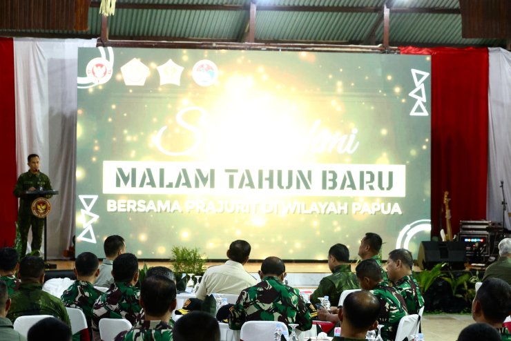 Papuanewsonline.com, Timika – Menteri Pertahanan RI Sjafrie Sjamsoeddin, didampingi Panglima TNI Jenderal TNI Agus Subiyanto dan Wakil Kepala Staf Angkatan Darat (Wakasad) Letjen TNI Tandyo Budi R., merayakan malam pergantian tahun bersama ribuan prajurit TNI yang bertugas di Papua. Acara penuh kehangatan ini berlangsung di Markas Yonif 754/Eme Neme Kangasi, Timika, Papua, Selasa (31/12/2024).