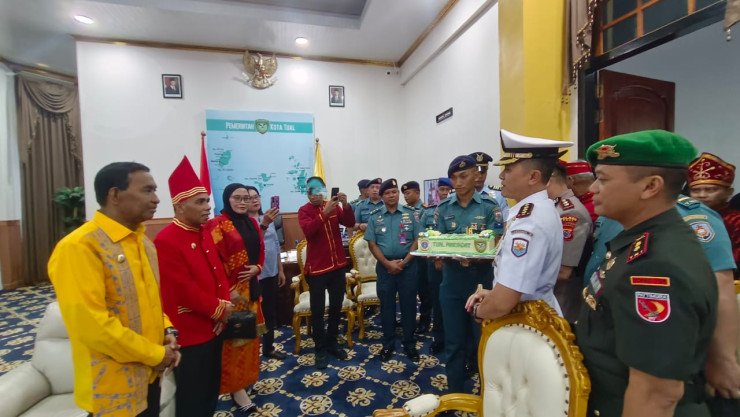 Sebagai simbol sinergi dan kebersamaan lintas sektor dalam membangun Kota Tual, Komandan Pangkalan TNI Angkatan Laut (Lanal) Tual, Kolonel Laut (P) Hananto Dwi Prasetyo, S.T., M.Tr.Hanla., M.M., menyerahkan kue ulang tahun kepada Wali Kota Tual, Hi. Ahmad Yani Renuat, S.Sos., M.Si., MH, dan Wakil Wali Kota Tual, Amir Rumra, S.Pi., M.Si, dalam rangka peringatan Hari Ulang Tahun (HUT) ke-18 Kota Tual.