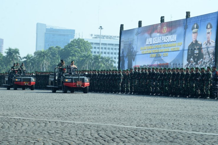 Apel gelar pasukan tersebut dipimpin oleh Panglima TNI Jenderal TNI Agus Subiyanto, S.E., M.Si., dan didampingi oleh Kapolri Jenderal Pol. Listyo Sigit Prabowo.