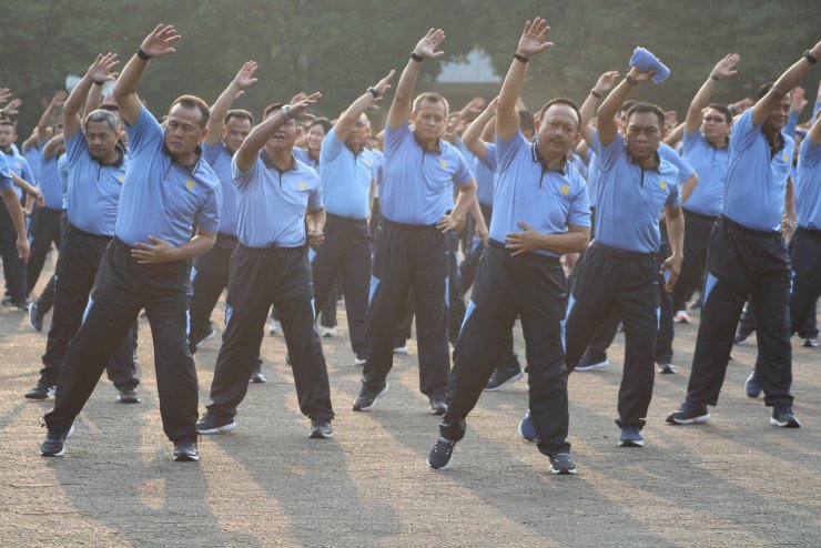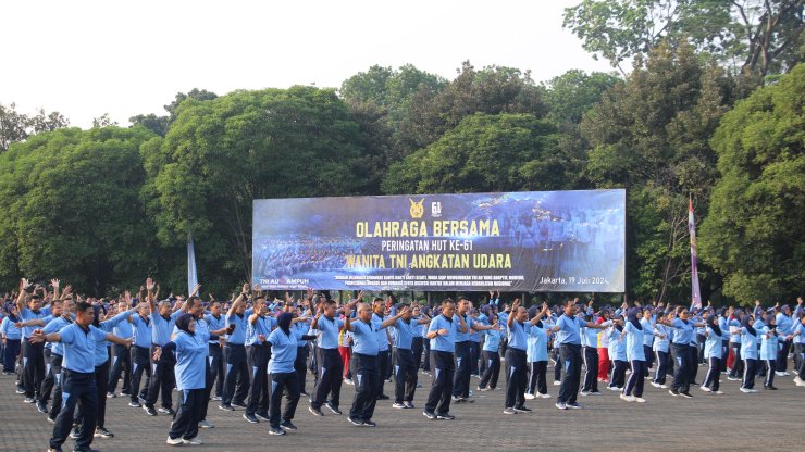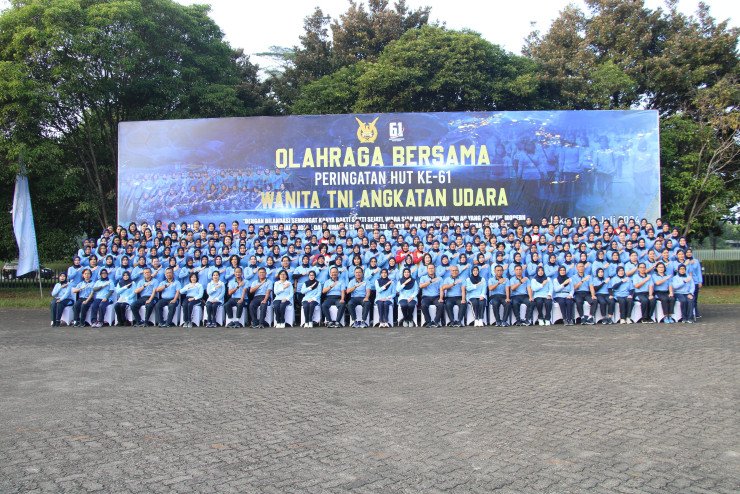 Kegiatan olahraga bersama ini merupakan salah satu rangkaian acara dalam memperingati hari ulang tahun ke-61 Wanita Angkatan Udara (Wara).