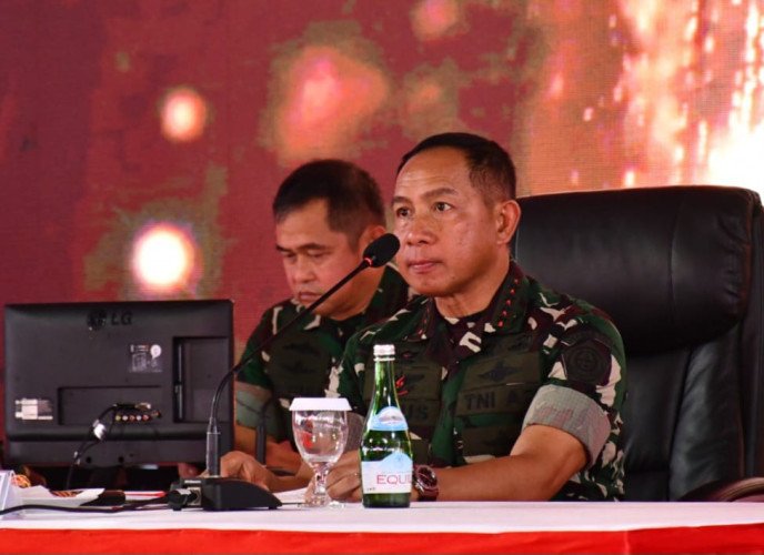 Papuanewsonline.com, Bandung - Panglima TNI Jenderal TNI Agus Subiyanto didampingi Kasad Jenderal TNI Maruli Simanjuntak, Kasal Laksamana TNI Muhammad Ali dan Kasau Marsekal TNI Mohamad Tonny Harjono, melakukan kunjungan kerja dan memberikan pengarahan kepada para Komandan Satuan Jajaran TNI, bertempat di Sesko TNI Jl. R.A.A. Martanegara No. 11 Bandung, Jawa Barat, Jumat (26/7/2024).