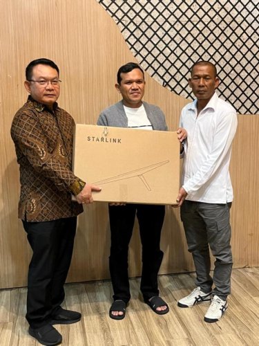 Dudung Abdurachman secara simbolis menyerahkan bantuan Starlink beserta power