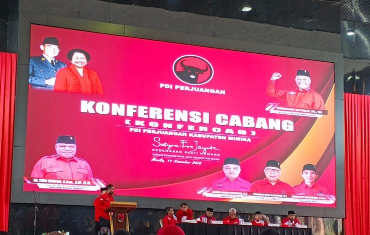 Konferensi Cabang DPC PDI Perjuangan Mimika di Gedung Eme Neme Yauware digelar hangat dan penuh kebersamaan, fokus memperkuat regenerasi kader, soliditas struktur, dan kolaborasi menuju kesiapan Pemilu 2029.