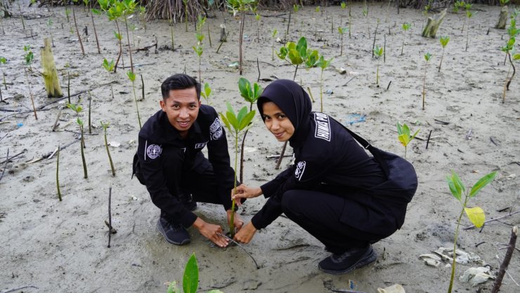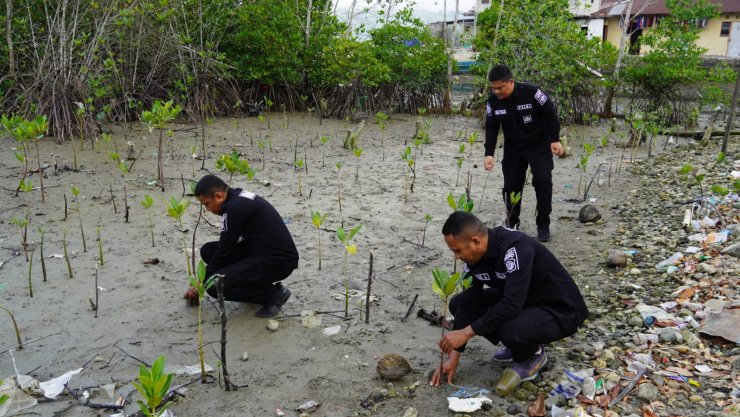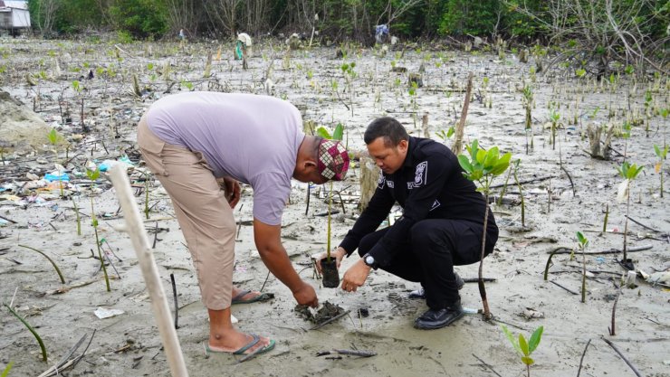 Peduli Lingkungan Pantai, Bidhumas Polda Maluku Tanam 100 Pohon Mangrove