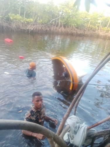 Kejadian tersebut terjadi sekitar pukul 17.00 WIT diduga perahu motor naik ke atas akar pohon bakau hingga berakibat terbalik.