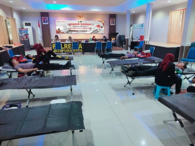 Giat yang digelar mulai jam 9 pagi tersebut menghadirkan personel Polresta Jayapura Kota dan Polsek jajaran untuk mendonasikan darah mereka untuk yang membutuhkan.