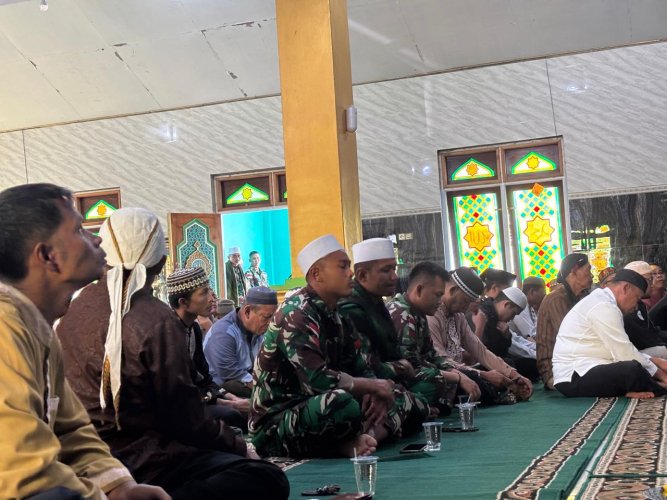 Dansatgas Yonif 641/Bru Letkol Inf Aprianda S.H., M.Sc., beserta personel Pos Kotis Walesi menghadiri acara memperingati Isra Mi’raj Nabi Muhammad Saw 1446 Hijriyah yang bertema ‘’Melalui Peringatan Isra Mi’raj Nabi Muhammad SAW, Bersama Kita Eratkan Ukhuwah Islamiah Dan Peningkatan Ibadah Serta Pelayanan Kepada Umat.’’