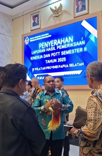 Papuanewsonline.com, Jayapura – Bupati Roni Omba, S.IP menghadiri acara penyerahan hasil Pemeriksaan Kinerja dan Pemeriksaan Dengan Tujuan Tertentu (PDTT) Semester II di wilayah Provinsi Papua Selatan yang berlangsung di Kantor BPK Perwakilan Provinsi Papua Selatan, Jayapura, Selasa (20/1/2026).