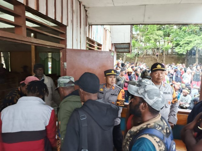 Papuanewsonline.com, Tolikara – Bertempat di Aula Gereja Ebenheizer Kota karubaga, Personel Polres Tolikara dibeck-up oleh personel BKO Polda Papua dan Brimob BKO memberikan pengamanan pelaksanaan Bimtek (Bimbingan Teknis) bagi petugas KPPS yang diselenggarkan oleh KPUD Kab. Tolikara, Jumat (22/11/2024).
