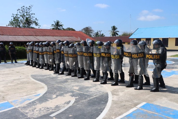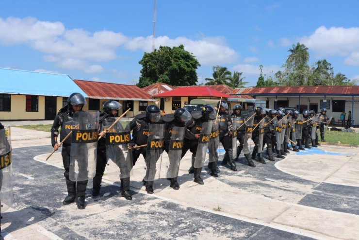 Personel Polres Mappi Secara Rutin Laksanakan Latihan Pengendalian Massa Jelang Pemilu 2024