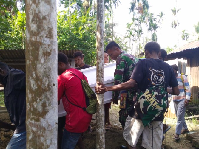 Personel Pos Ampas Satgas Yonif 122/TS Bantu Pemakaman Warga di Distrik Waris