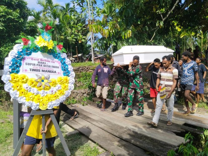 Menurutnya ini merupakan suatu bentuk rasa turut berduka cita Prajurit TNI kepada pihak keluarga yang ditinggalkan khususnya keluarga Alm Tinus (28), Kami dari keluarga besar Satgas Pamtas RI-PNG Yonif 122/Tombak Sakti mengucapkan turut berduka cita semoga amal ibadahnya diterima di sisi Tuhan Yang Maha Esa, Kami yang hadir dari anggota pos semata-mata untuk meringankan beban duka warga,” jelasnya.