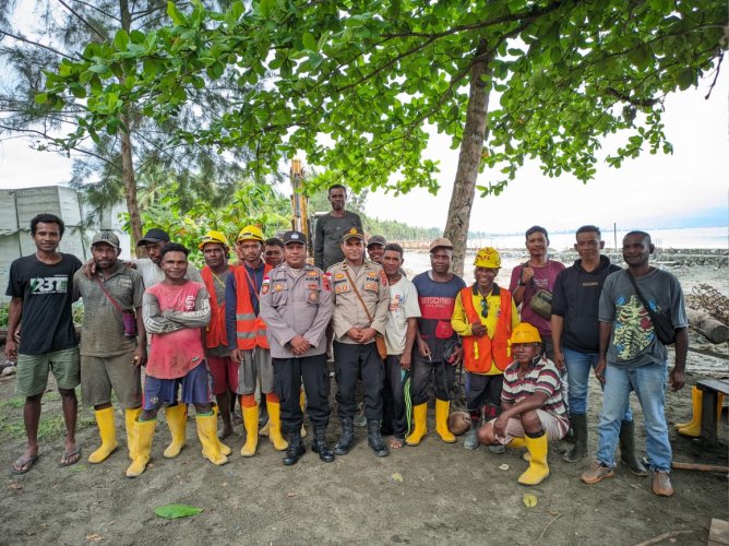 Kunjungan Polsek Muara Tami guna memberi himbauan kepada warga untuk mengutamakan keselamatan dalam menyelesaikan pekerjaannya.