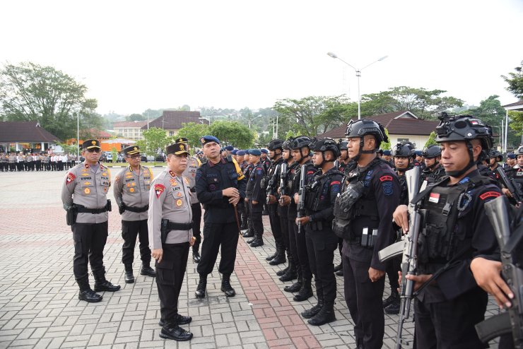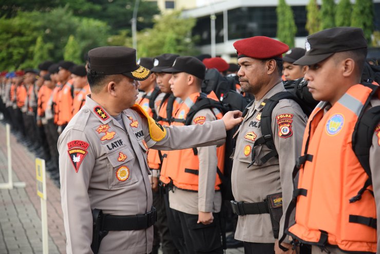 Dalam apel tersebut, Kapolda Maluku turut melakukan pengecekan kesiapan personel, serta menyerahkan perlengkapan tambahan berupa pelampung dan tas kepada personel secara simbolis.