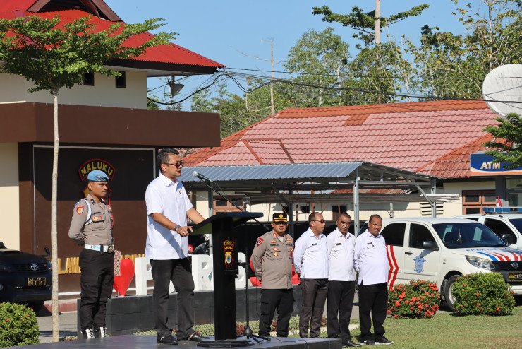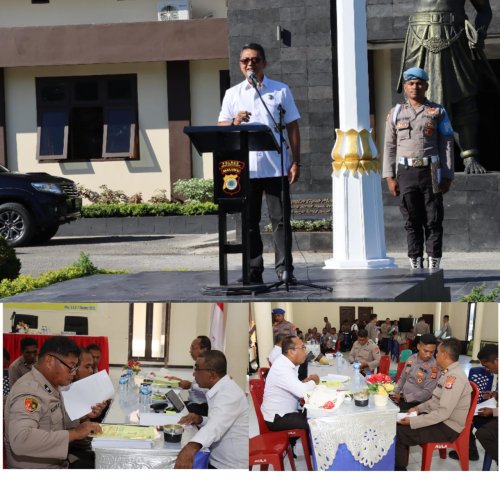 Papuanewsonline.com, Seram - Pertama kali di Tahun 2023, Itwasda Polda Maluku, Kombes Pol. Marthen Luther Hutagaol, SIK,MH, memimpin apel pagi di Mapolres Seram Bagian Barat (SBB).