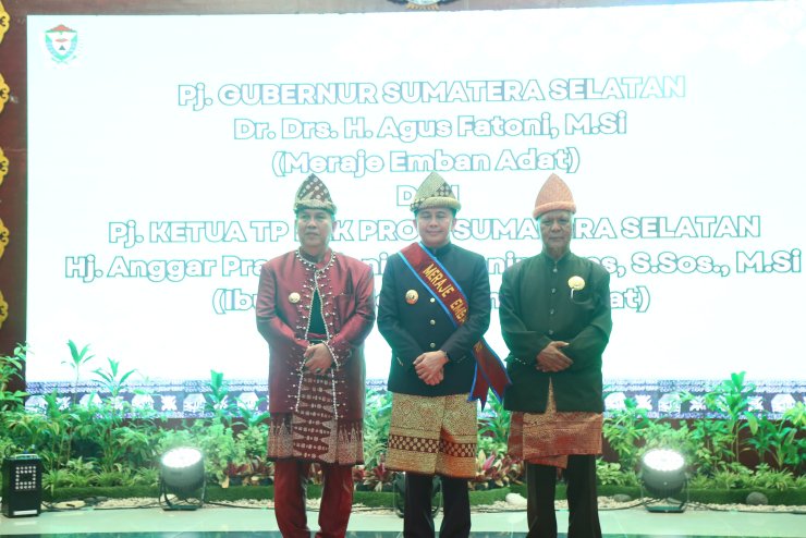 Papuanewsonline.com, Sumsel - Penjabat (Pj) Gubernur Sumatera Selatan (Sumsel) Agus Fatoni diberi gelar adat ‘Meraje Emban Adat’ dan Pj Ketua Tim Penggerak (TP) Pemberdayaan Kesejahteraan Keluarga (PKK) Sumsel Tyas A. Fatoni juga mendapat gelar ‘Ibungan Meraje Emban Adat’ oleh Lembaga Adat dan Pemerintah Kabupaten serta masyarakat Kabupaten Muara Enim. Gelar adat tersebut disematkan Pj Bupati Muara Enim Ahmad Rizali dan Ketua Adat Kabupaten Muara Enim H. Burtiham di Balai Agung Serasan Sekundang Kabupaten Muara Enim, Sumatera Selatan, Minggu (19/11/2023).