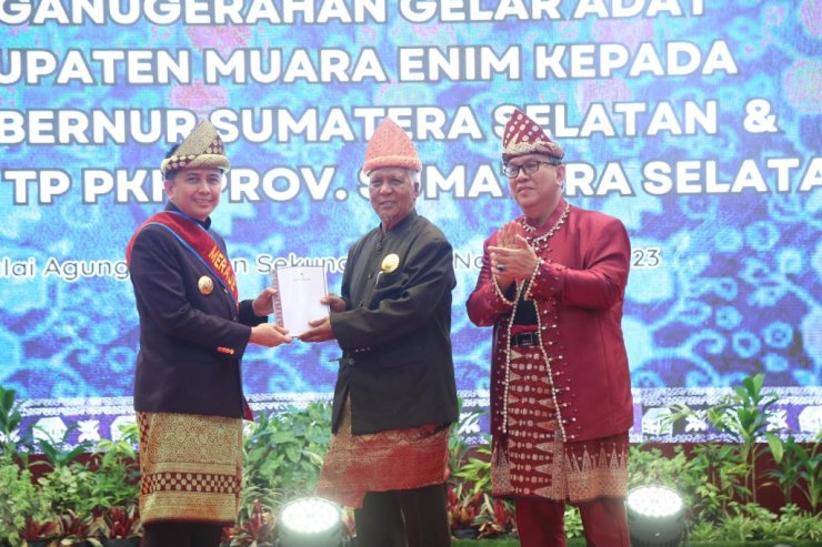 Dalam kesempatan yang sama, Pj Bupati Muara Enim Ahmad Rizali mengatakan, pemberian gelar adat kepada Pj Gubernur dan Istri ini merupakan rangkaian kegiatan Hari Ulang Tahun Kabupaten Muara Enim ke-77 Tahun.