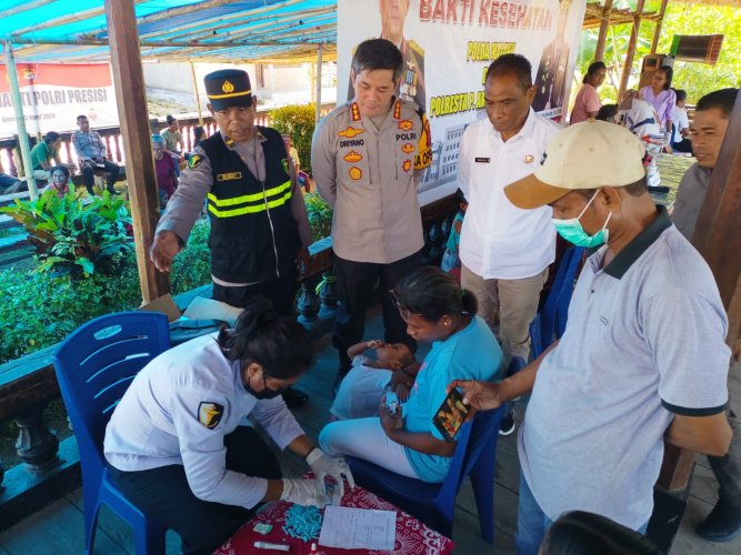 Papuanewsonline.com, Malteng - Kepolisian Daerah Maluku bersama Polres Kota Ambon menggelar kegiatan bakti kesehatan di Desa Aboru, Kecamatan Pulau Haruku, Kabupaten Maluku Tengah, Selasa (23/4/2024).