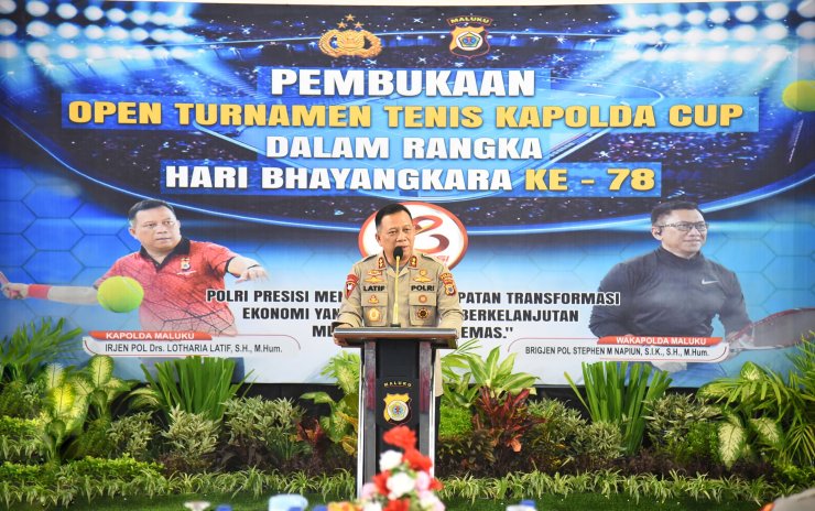 Turnamen yang diikuti oleh 12 club tenis untuk menyambut HUT ke-78 Polri ini secara resmi dibuka oleh Kapolda Maluku, Inspektur Jenderal Polisi Drs. Lotharia Latif SH., M.Hum.
