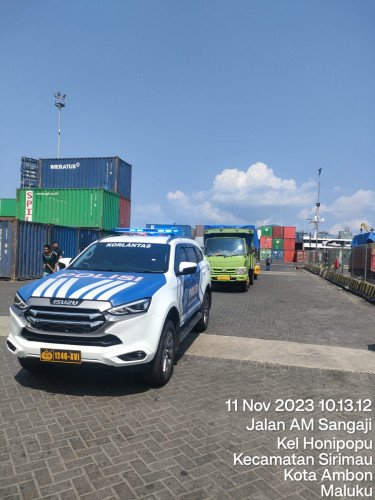 Pengamanan dan pengawalan mulai berlangsung dari Pelabuhan Terminal Peti Kemas (TPK) Ambon. Turut hadir Kapolsek KPYS Iptu Julkisno Kaisupy dan Kaur Bin Ops Satuan Samapta Polresta Pulau Ambon dan Pulau-pulau Lease, Ipda Burhan Nawir.