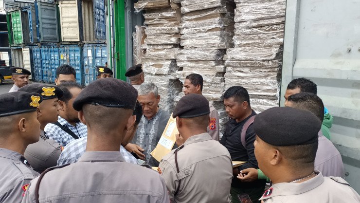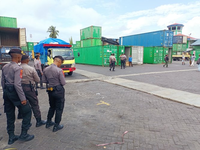 Proses pengamanan logistik Pemilu berupa kotak suara tersebut turut dihadiri Kapolsek Kawasan Pelabuhan Yos Sudarso (KPYS) Iptu Julkisno Kaisupy beserta personelnya.